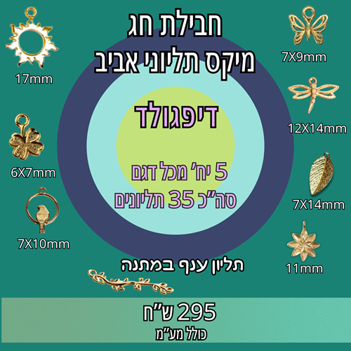 5 יחידות מכל דגם בדיפגולד 13125gf פרפר 12982gf שפירית 11906gf עלה 16372gf פרח 16329gf שמש 3837gf תלתן 13692 ציפור יחידה 1 תליון ענף במתנה 15159gf