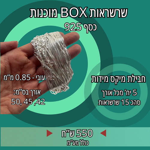 שרשראות כסף מוכנות באורכים שונים – סהכ 15 יחידות